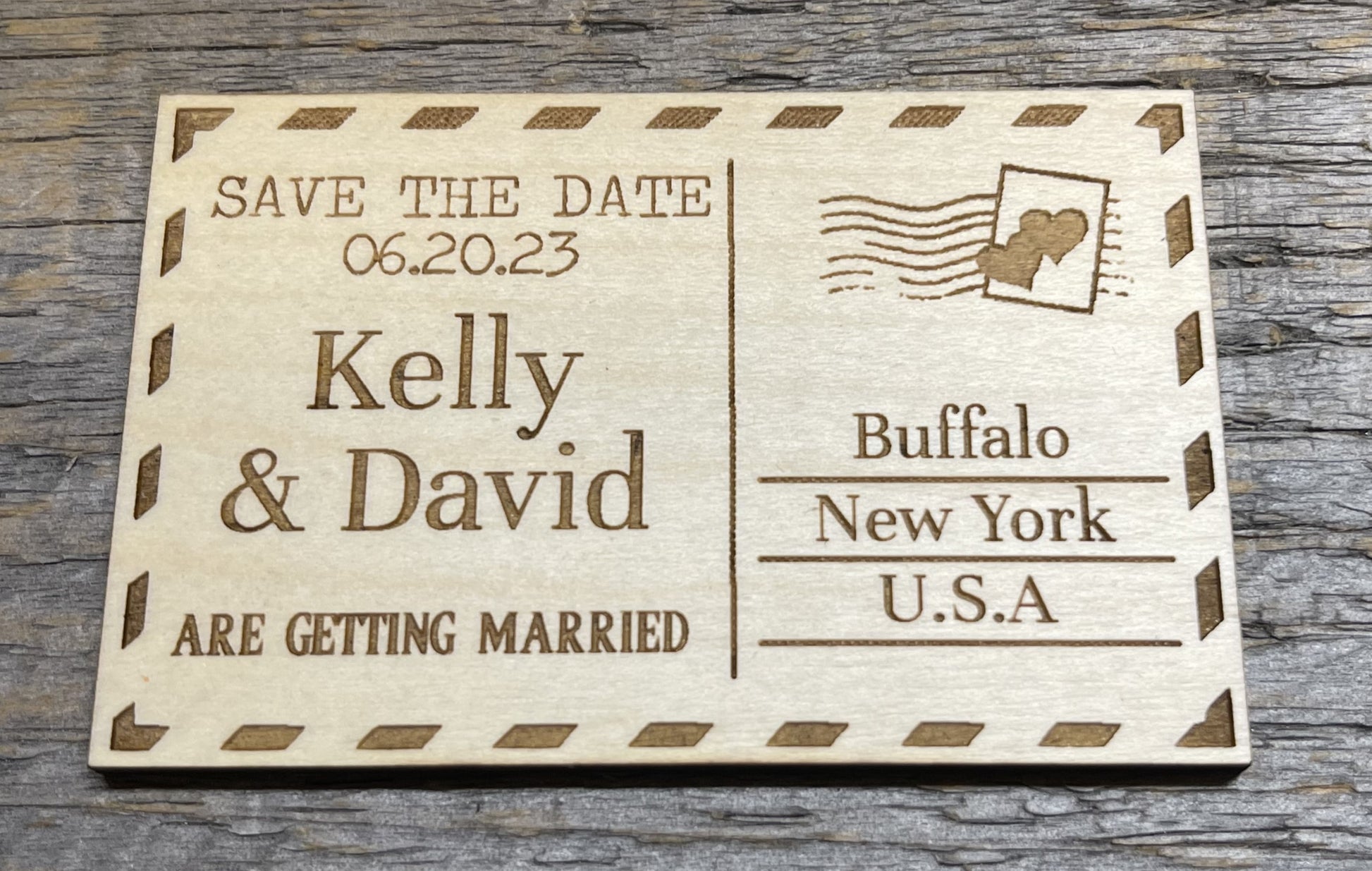 Ces aimants en bois gravés et découpés au laser personnalisés pour enregistrer la date sont un une façon unique, amusante et pratique d’attirer l’attention de vos invités de mariage. Vos aimants de réfrigérateur Save the Date seront personnalisés avec les noms des mariés, la date spéciale et, pour la conception de la carte postale, la ville où le mariage a lieu.