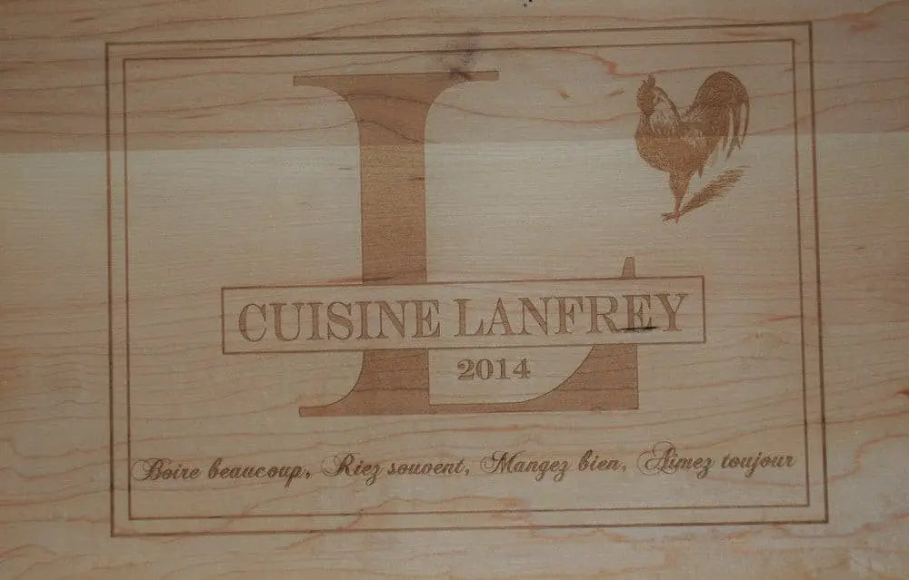 Our solid Maple Wood cutting boards are made from quality wood harvested exclusively in Canada. These cutting boards are ideal for cutting and also for food presentation. The front is laser engraved for displaying on your counter or bar and the back is left plain for cutting. Grooved finger grip on each end to better manipulate the board.