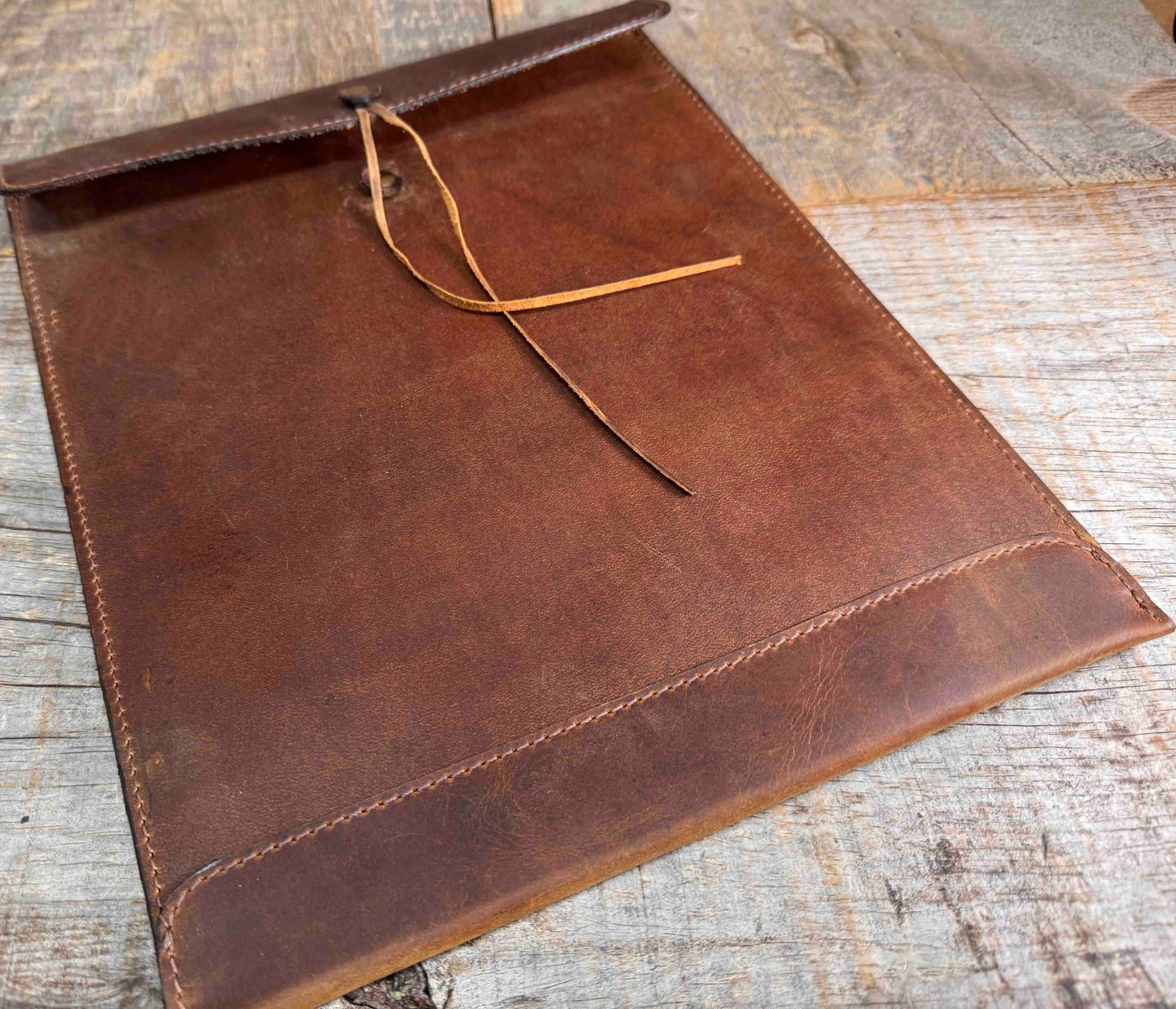 Folders are 10.2 x 12.2 x .7 and come with a leather tie wrap for secure closure.