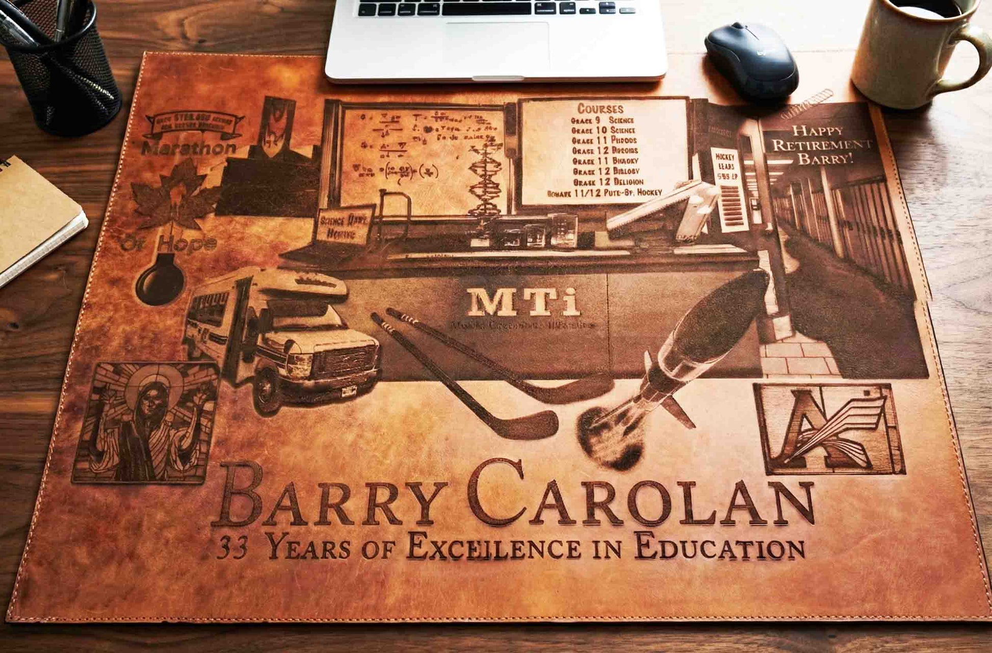 You desk mat will be laser engraved as per your instructions. There is no better method for engraving leather. It is the utmost in precision and quality that cannot be replicated through any other method. Laser engraving is simply the best way to customize leather. It lasts forever and will never fade or peel away.