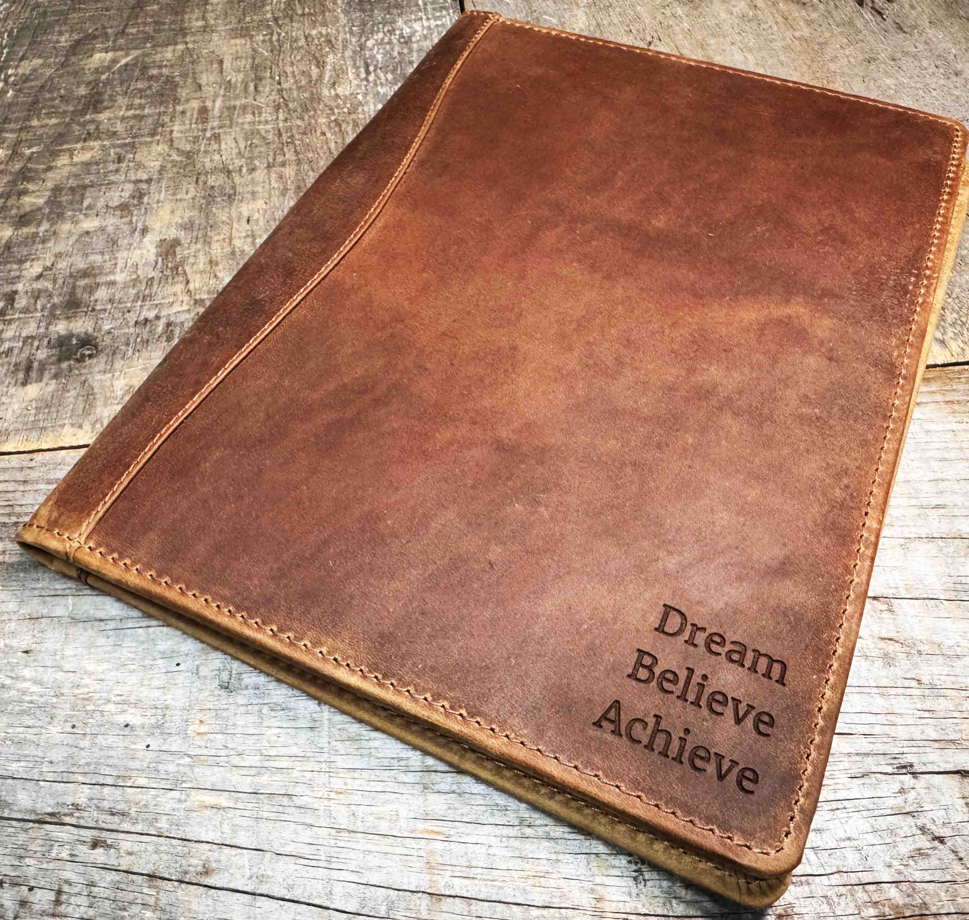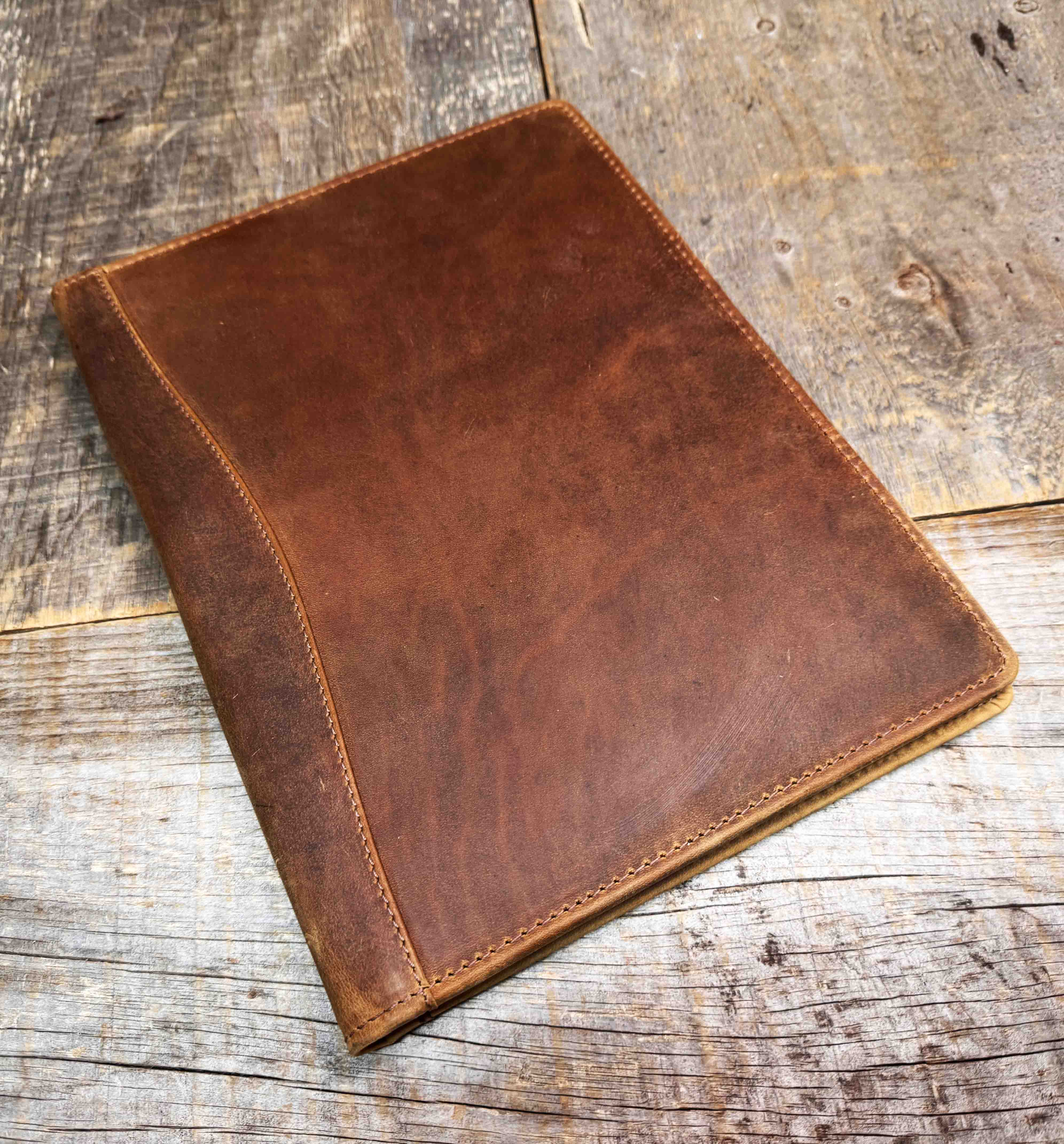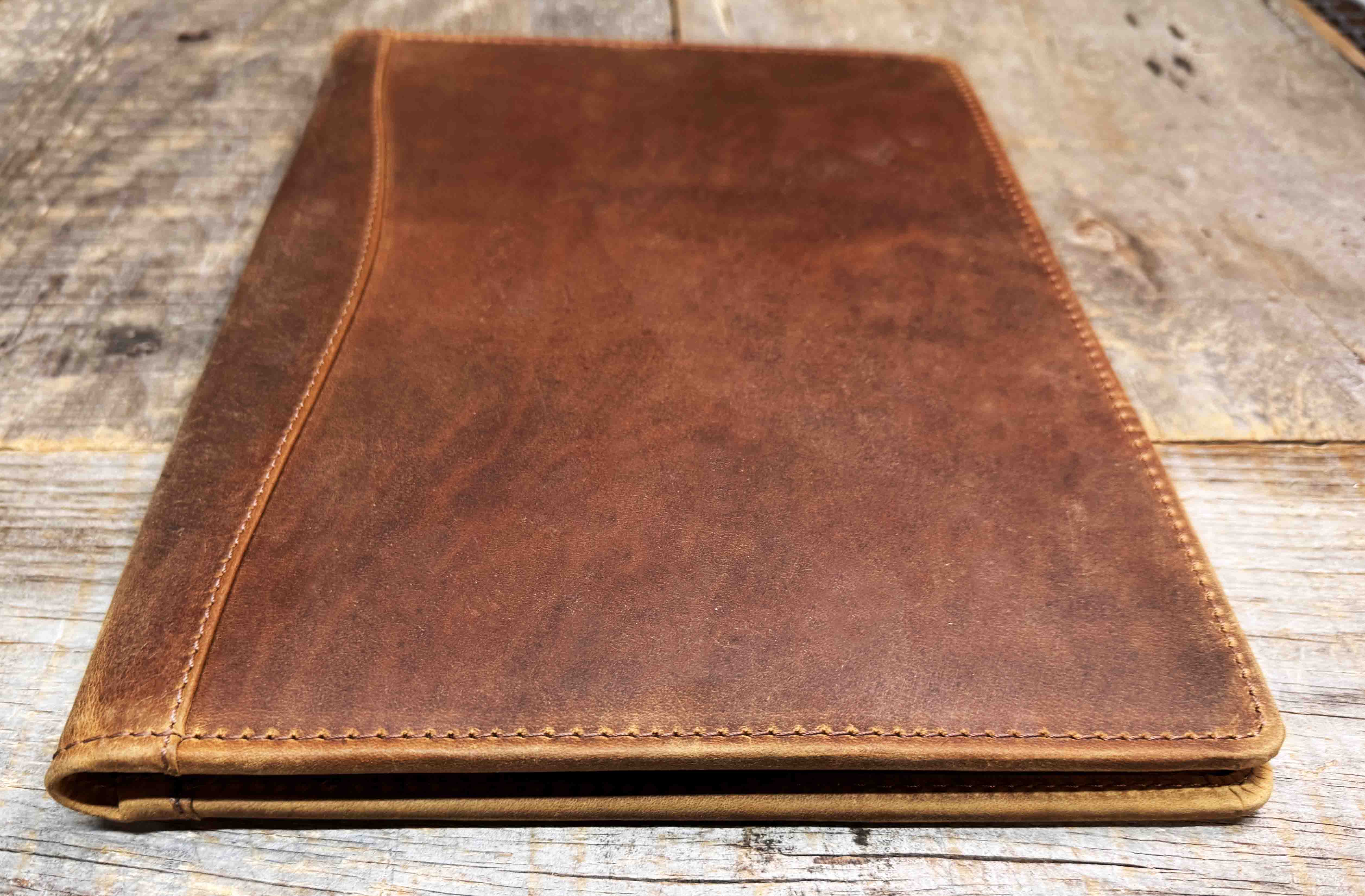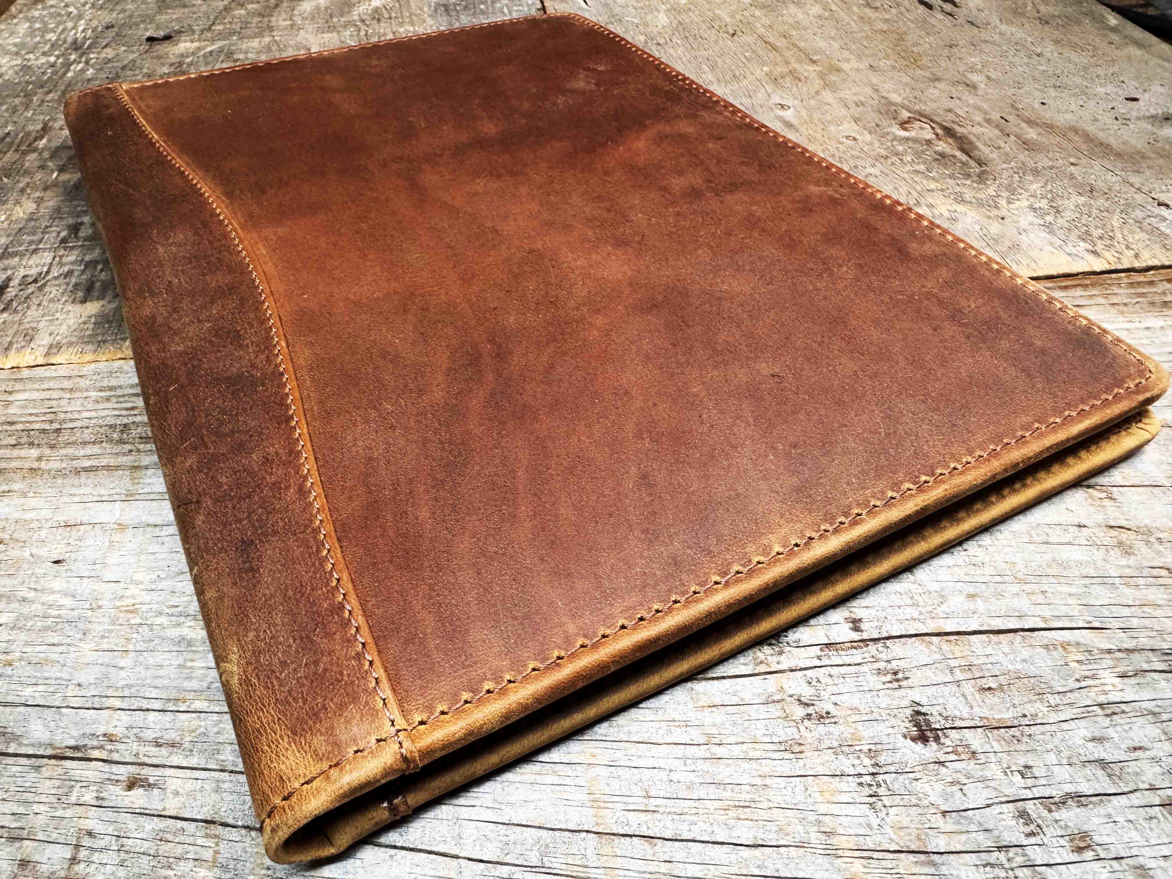 The rustic leather we use for these covers ensures a soft, supple texture that ages gracefully, developing a unique patina over time, making each folio cover a personalized work of art.