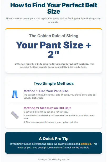 - Handcrafted Excellence: Each belt is cut, edged, and finished by hand, ensuring meticulous attention to detail and a superior product.