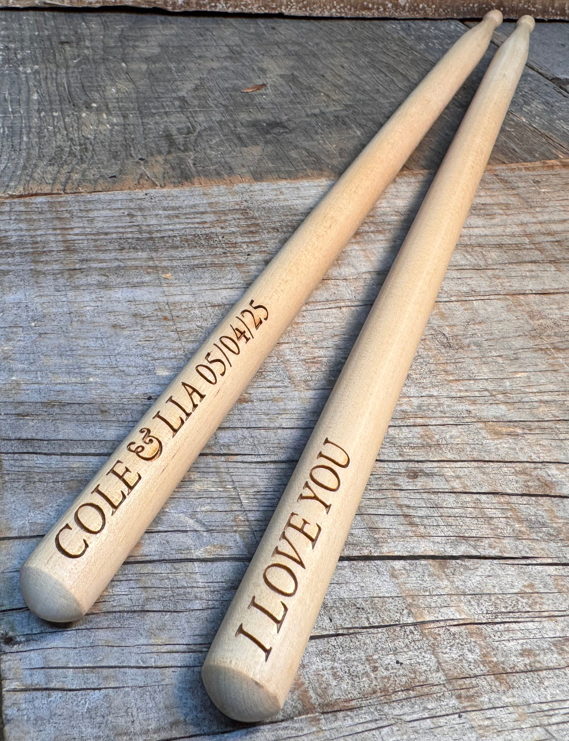 Rock on with your very own pair of awesome, beautifully laser engraved, custom drumsticks.